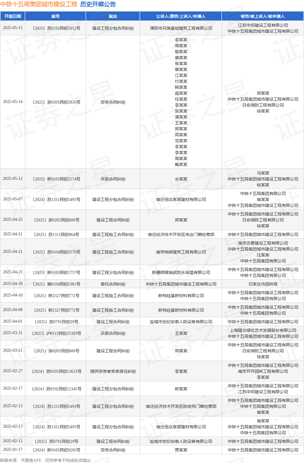 本站消息,根据天眼查APP显示,近日公布了一则中铁十五局集团城市建设工程有限公司作为被告/被上诉人的开庭公告,详细内容如下: